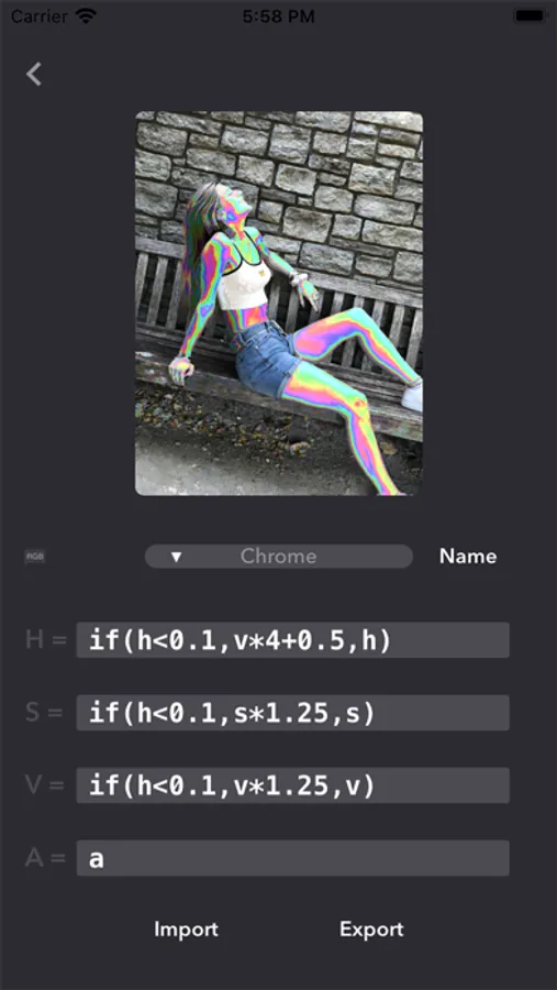 Every Pixel™ allows you to control the color of every pixel in your image, via generalized equations.