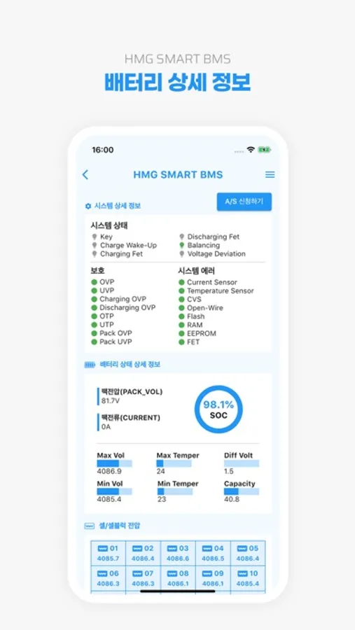 HMG 배터리 정보를 확인하고 A/S 신청을 할 수 있습니다.