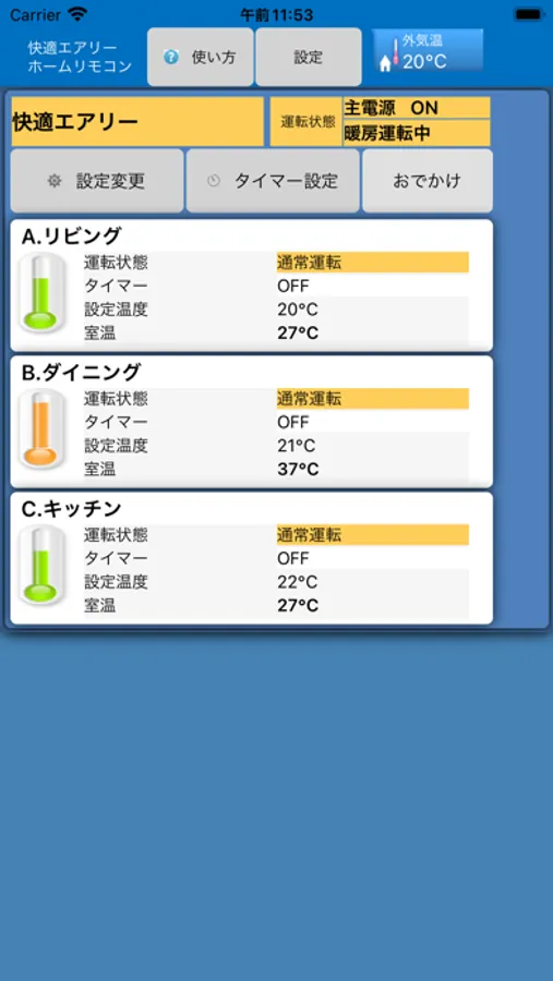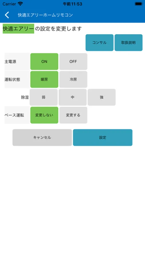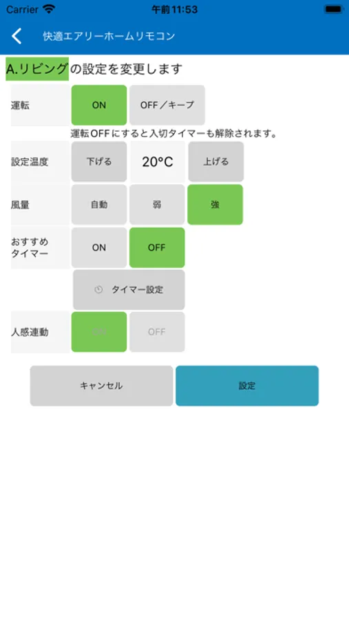 ご自宅内で、お手持ちのスマートフォンから快適エアリーの設定・操作が簡単に行えます。