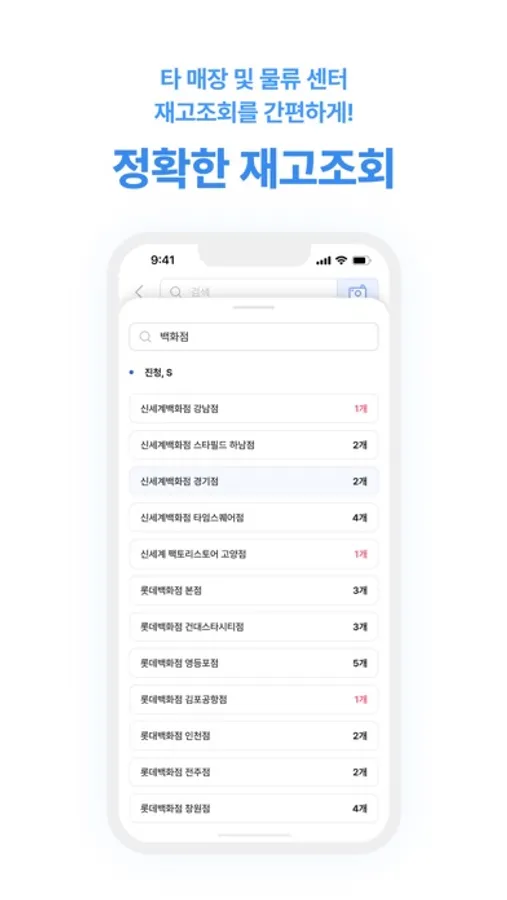 - 현매장 및 타매장 재고 조회