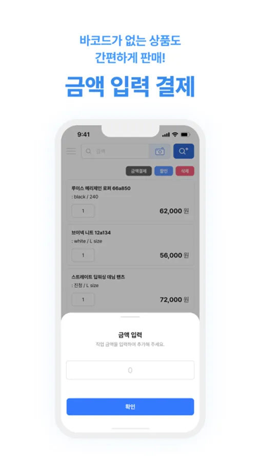 - 상품명 및 바코드로 손쉽게 검색 가능