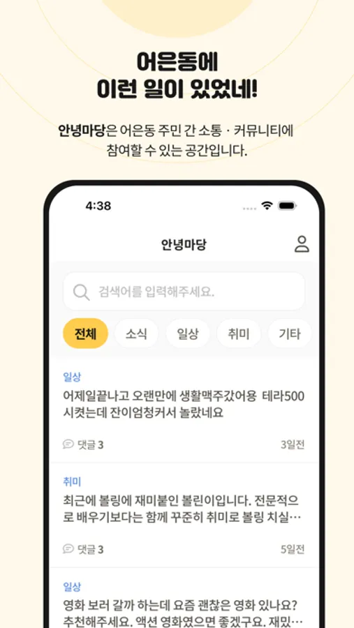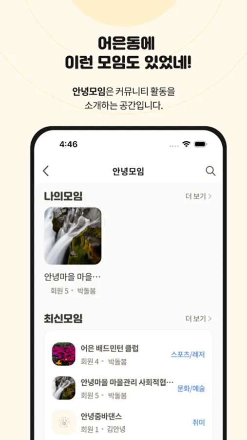 안녕모임 페이지는 어은동 주민 간 활동을 소개하고 활동에 참여할 수 있는 공간입니다.