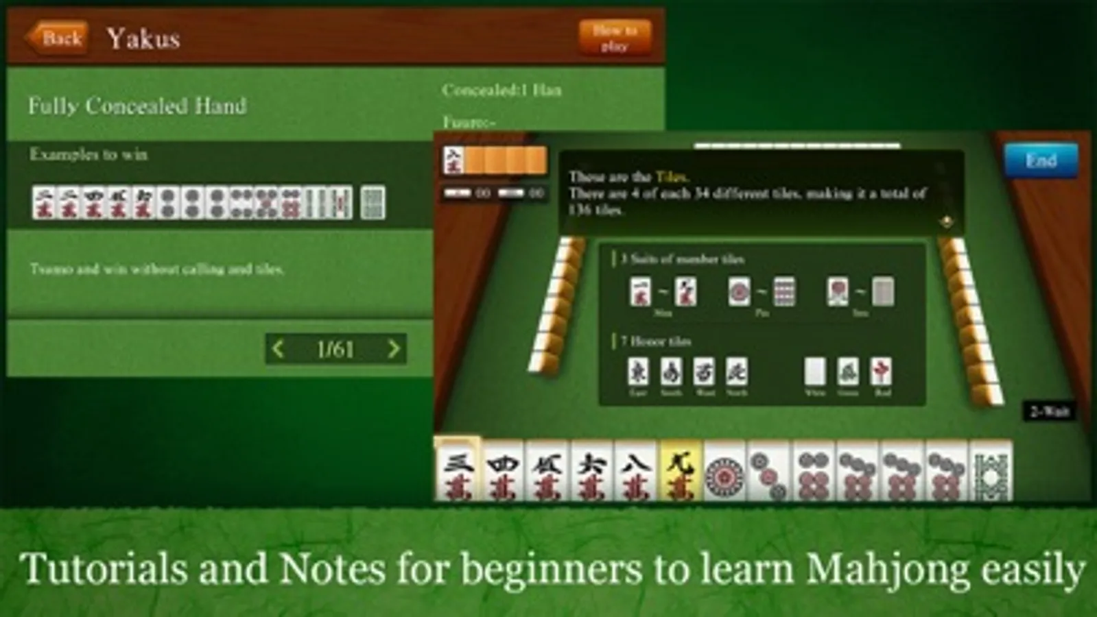 Beginners are easy to catch up with rules and Yaku explanations available during the matches.
