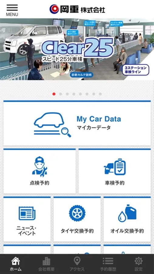 岡重株式会社 Clear25車検公式アプリでは、お客様のご都合に合わせてアプリからご予約が可能です。