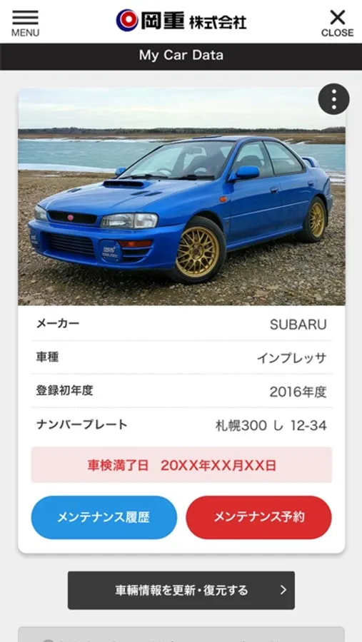 一度店舗へご来店いただきお車の登録がある場合、アプリに必要情報を入力していただくと、ご自身のお車の車検時期などがアプリ上でご確認いただけます!