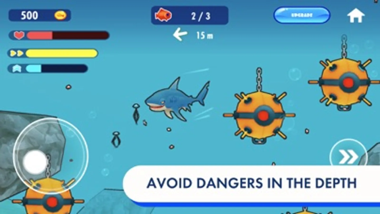 Reach the deepest place in the ocean, but don’t forget: the lower you swim, the more powerful shark you need to endure the pressure