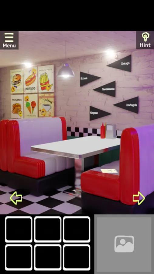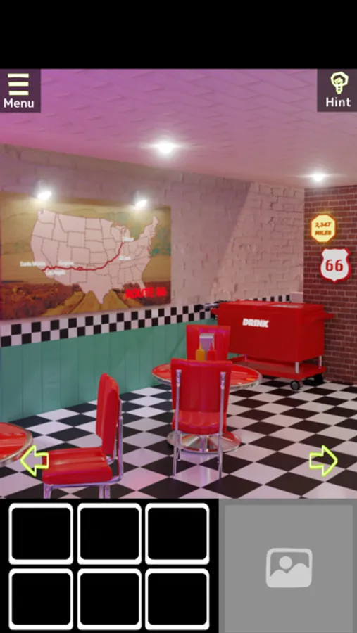 This game is an escape game based on the theme of a diner or casual restaurant with an old American atmosphere.