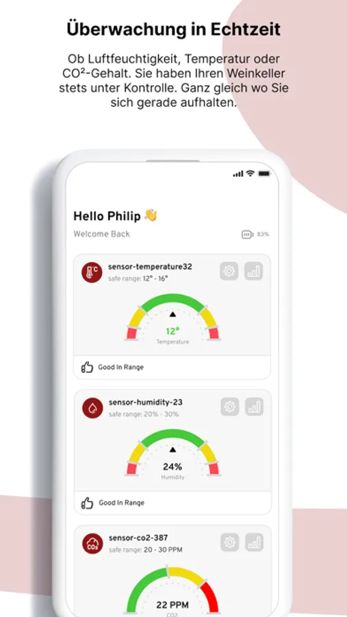 Mit der Elara-App, ausgestattet mit der neuesten IoT-Technologie, können Sie jetzt Ihren Weinkeller von überall auf der Welt überwachen. Sie bekommen in Echtzeit Luftfeuchtigkeit, Temperatur und CO²-Werte angezeigt, um die Qualität Ihrer edlen Tropfen nicht aus den Augen zu verlieren. Dank der mehrstufigen Alarmfunktion werden Sie bei möglichen Abweichungen der für die Qualität der Weine notwendigen Werte alarmiert, sodass Sie ehestmöglich die entsprechenden Maßnahmen ergreifen können.