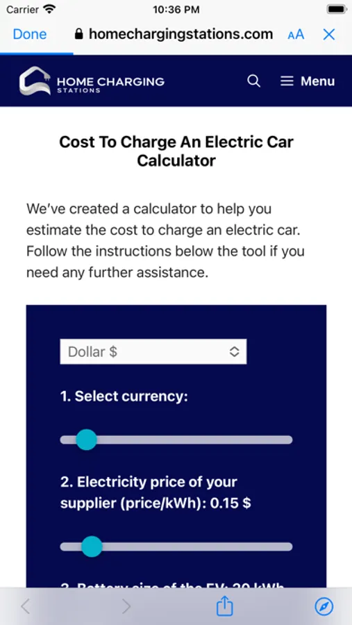 Follow the steps below to estimate the charging cost: Step 1: Enter the battery capacity in kWh.