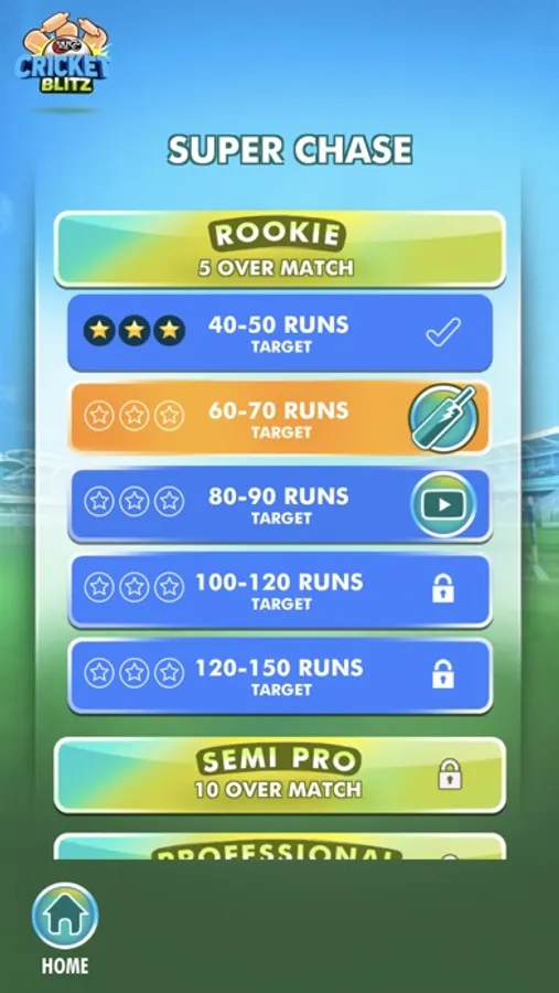 Super Over: You have just one over to complete a nerve wrecking batting challenge! Every win takes you one step closer to the final!! Now get sloggers and your power-hitters geared up!