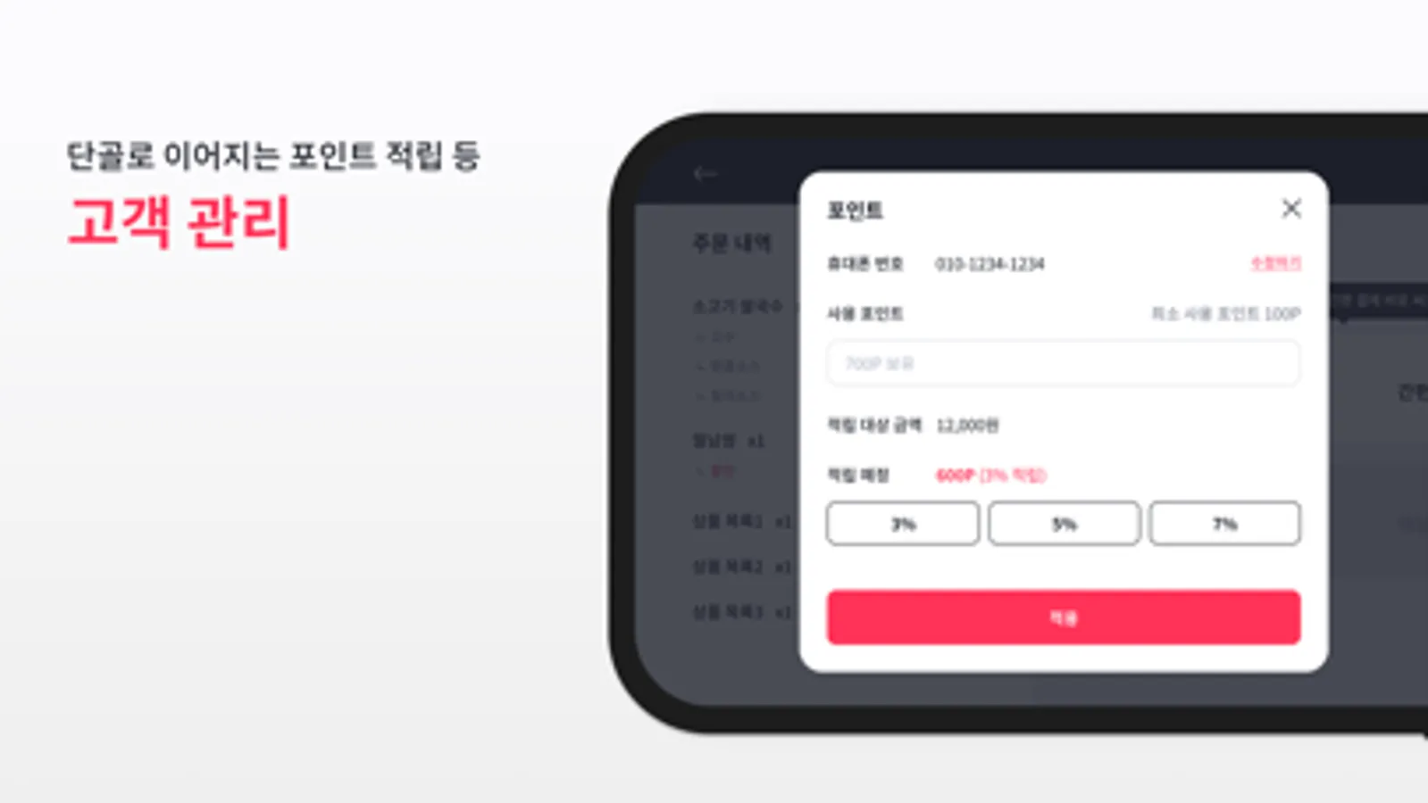 ▷ 휴대폰 번호 입력만으로 OK! 간편한 포인트 적립 정책을 통해 단골을 늘릴 수 있습니다.