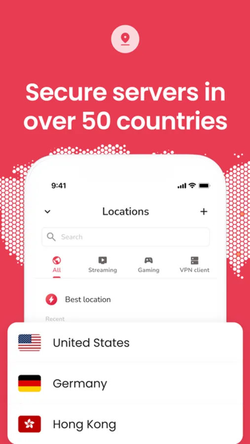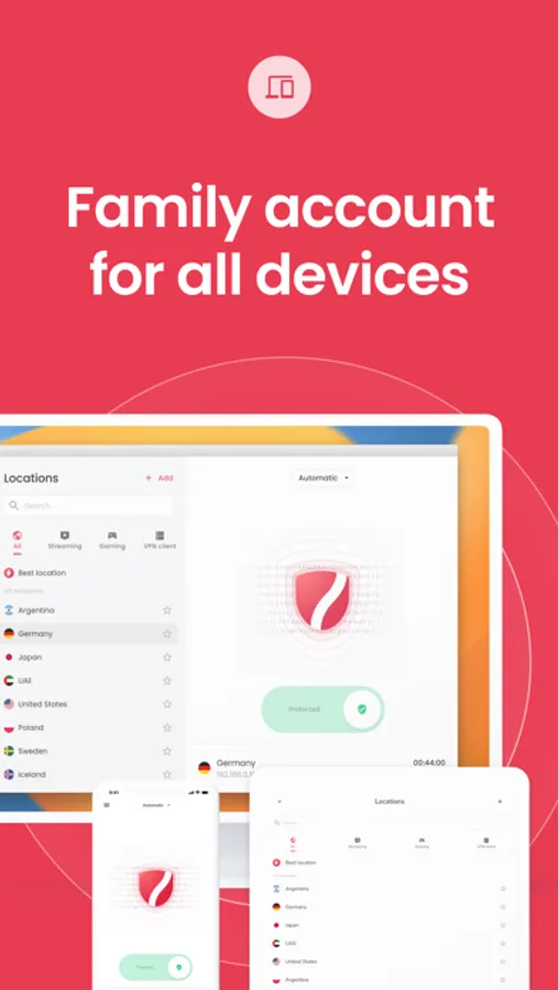 Thanks to powerful encryption algorithms and automatic selection of optimal protocols such as OpenVPN and IKEv2, your connection will be maximally protected from hacker attacks and unwanted surveillance.