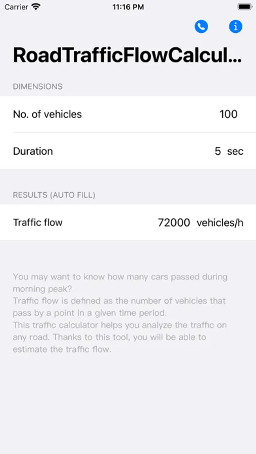 This traffic calculator helps you analyze the traffic on any road. Thanks to this tool, you will be able to estimate the traffic flow.