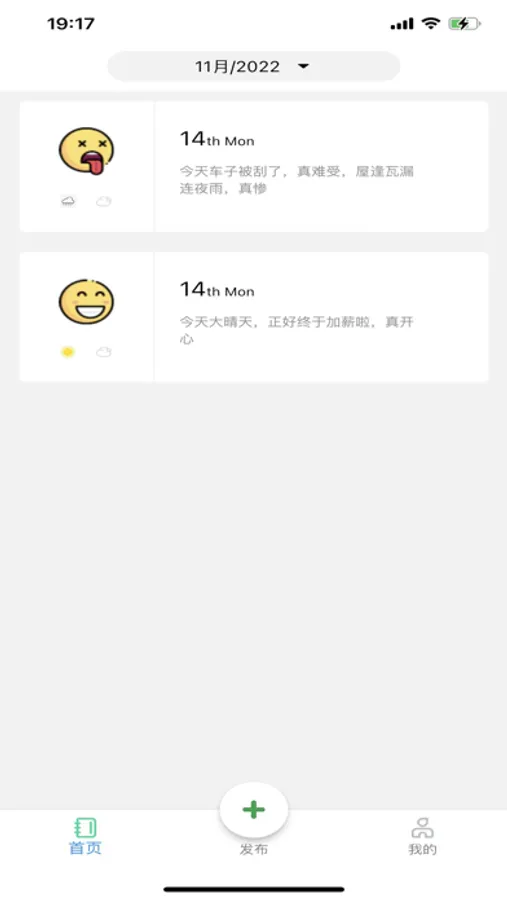 本App可以记录自己每天的心情,天气,发生了什么,以后可以回忆往事,知道之前每天的心情情况