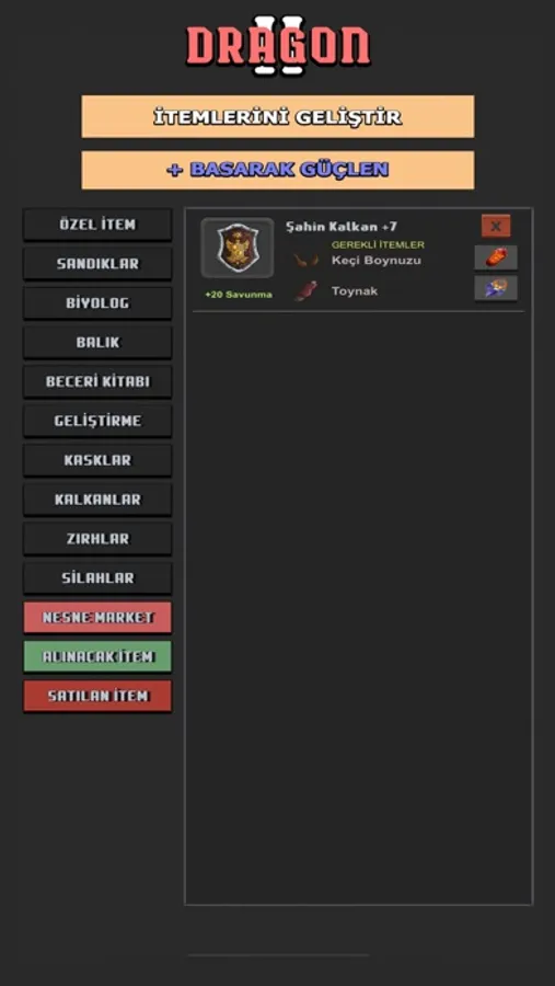 Kazandığınız itemler envanterinizde toplanır. Bu itemleri ister + basarak geliştirebilir, isterseniz de itemlerinizi başka kullanıcılara satabilirsiniz.