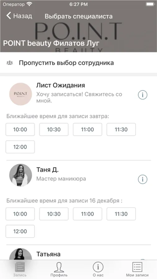 - выбрать необходимые услуги, время и мастера
