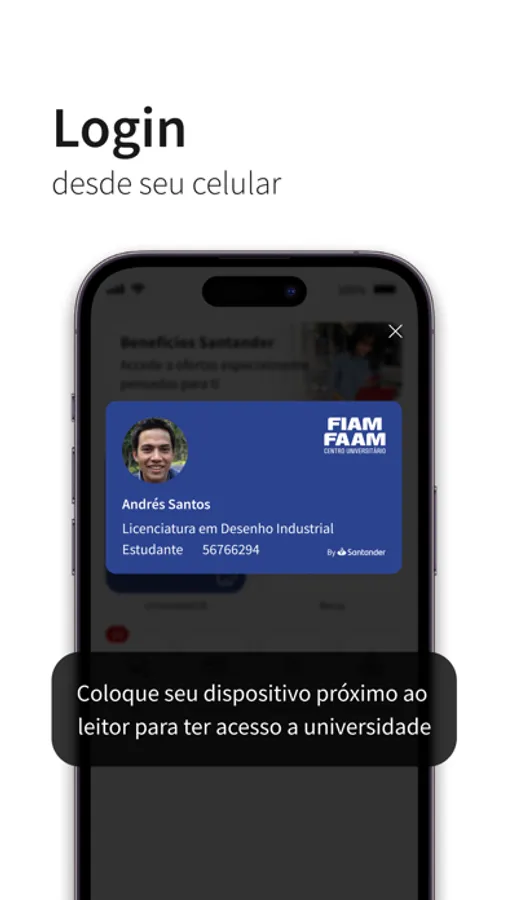 1. Criar sua identidade universitária móvel para ser reconhecido com segurança e rapidez, dentro e fora do Centro Universitário FIAM-FAAM e de suas divisões.