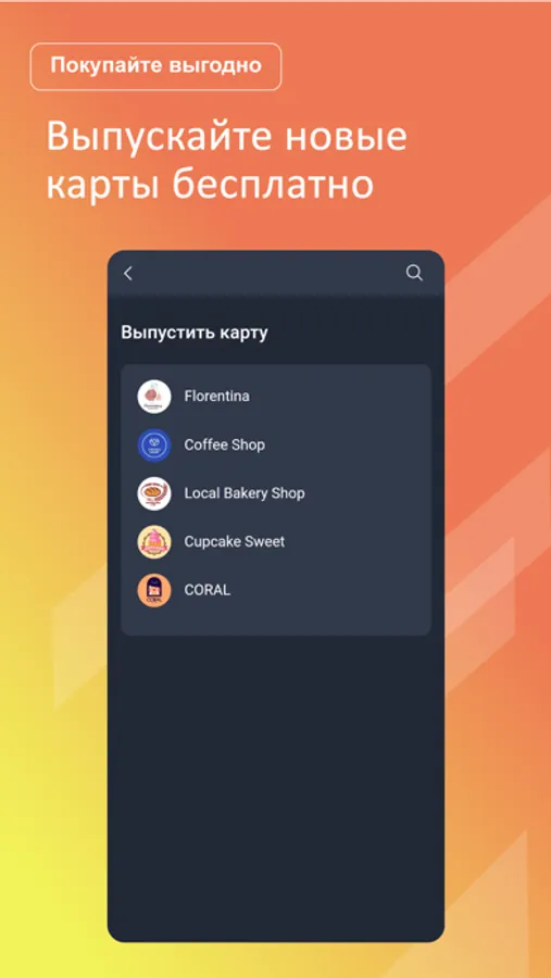 Если у вас пока нет нужной бонусной или скидочной карты, вы можете найти её в нашем каталоге. Просто выберите нужную карту и нажмите «Выпустить». Это бесплатно.