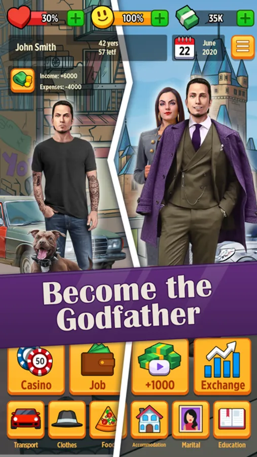 Rule the criminal world! Welcome to the real gangster life simulator. Dive into the criminal world, see how it works from the inside, do your best to become the Godfather and rule your underworld empire. Rise from a pocket thief to the Mafia Boss!