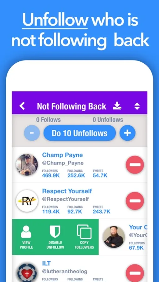 - Blacklist or whitelist users you do not want to follow or unfollow.