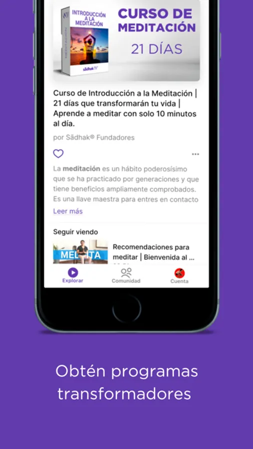 - Accede a nuestros programas más populares: ABC del Yoga, Introducción a la Meditación y más.