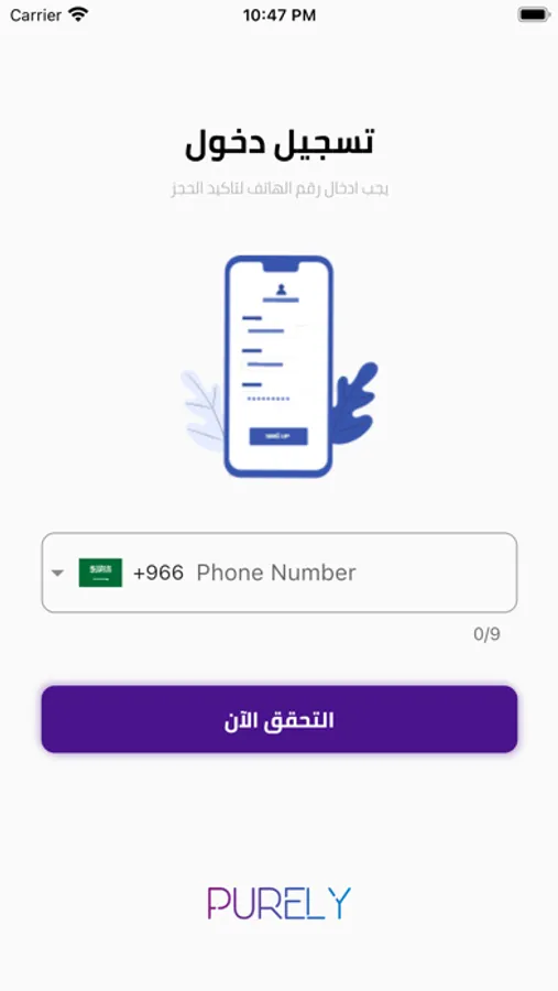 - دخول على التطبيق: سهلناها عليك ! فقط أدخل رقم الجوال وستتلقى على الفور رسالة قصيرة لدخول على الحساب
