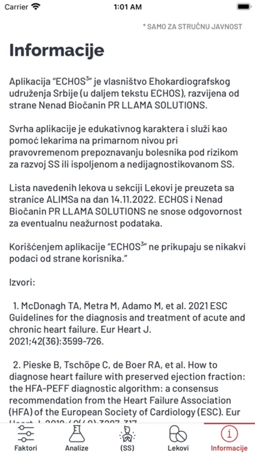Svrha “ECHOS³” aplikacije je edukativnog karaktera i služi kao pomoć lekarima na primarnom nivou pri pravovremenom prepoznavanju bolesnika pod rizikom za razvoj SS ili ispoljenom a nedijagnostikovanom SS.