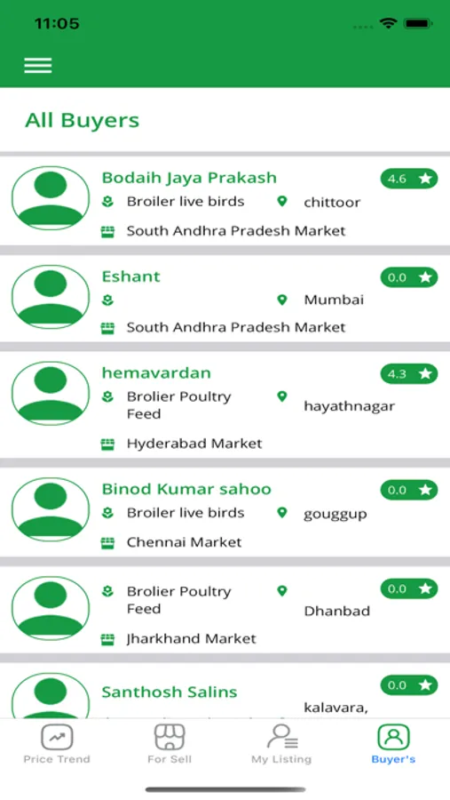 Registered users can view the list of buyers in the platform with the ratings and reviews