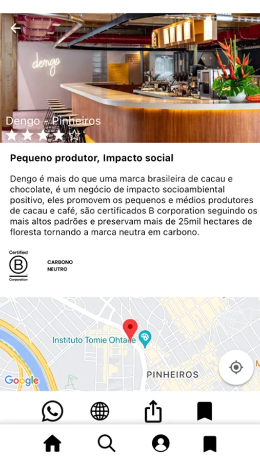 Selecionamos os lugares que se preocupam com o planeta e o impacto em nossa sociedade. Comece hoje a fazer compras de forma mais ética, aqui você encontra apenas restaurantes, lojas, marcas, produtos e serviços sustentáveis perto de você.