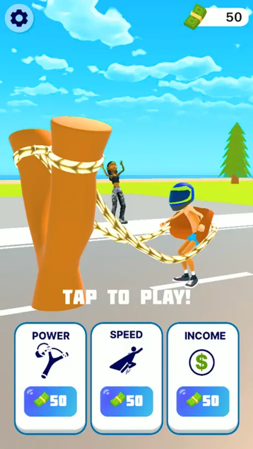 Launch yourself with a slingshot, avoid obstacles and earn money! But pay attention, the upgrades get more and more expensive as you buy them. Manage your money and grow your audience to earn even more money and reach bigger distances.