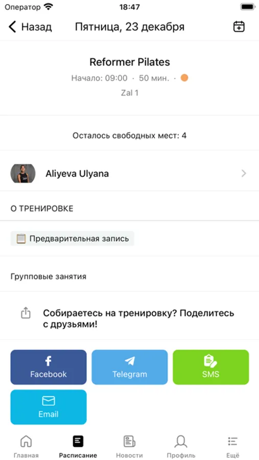 С помощью приложения вы можете следить за новостями, расписанием тренировок, оперативно получать информацию об изменениях в расписании и специальных предложениях.