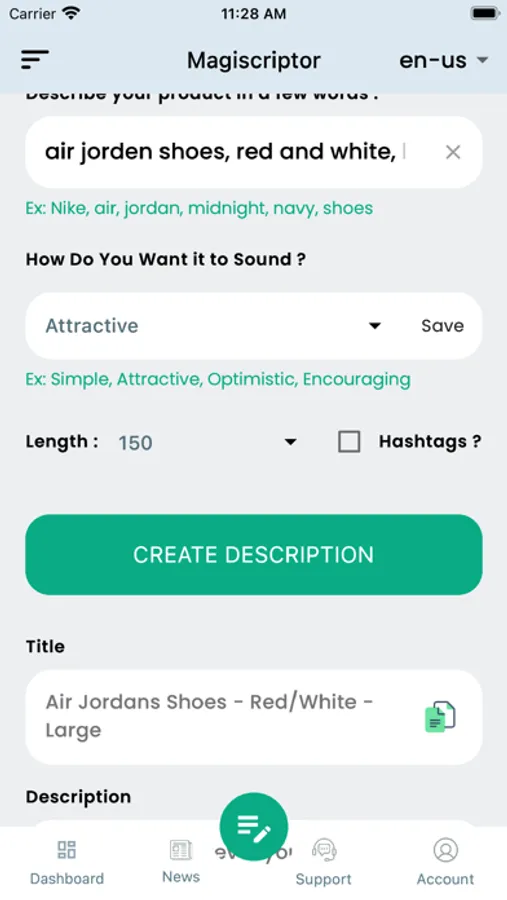 With our AI-powered app, you can generate professional-grade descriptions in seconds, complete with SEO optimization and plagiarism-free guarantee.