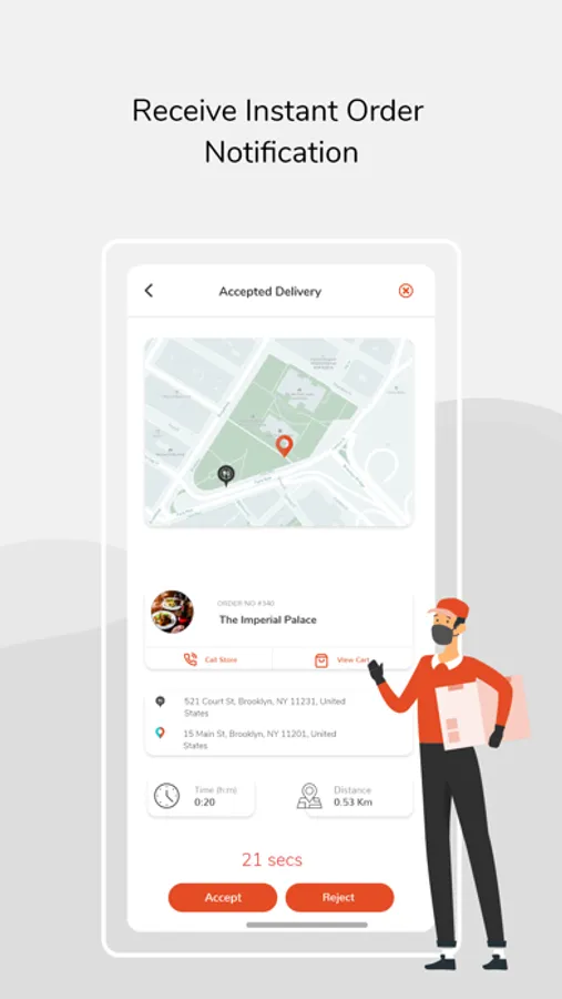 Immediately call the customer through the In-app call option and acknowledge your acceptance; stay in touch with your customer through the In-app chat feature.