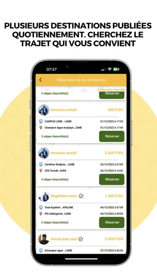 - Rechercher les trajets parmi plusieurs destinations disponibles.