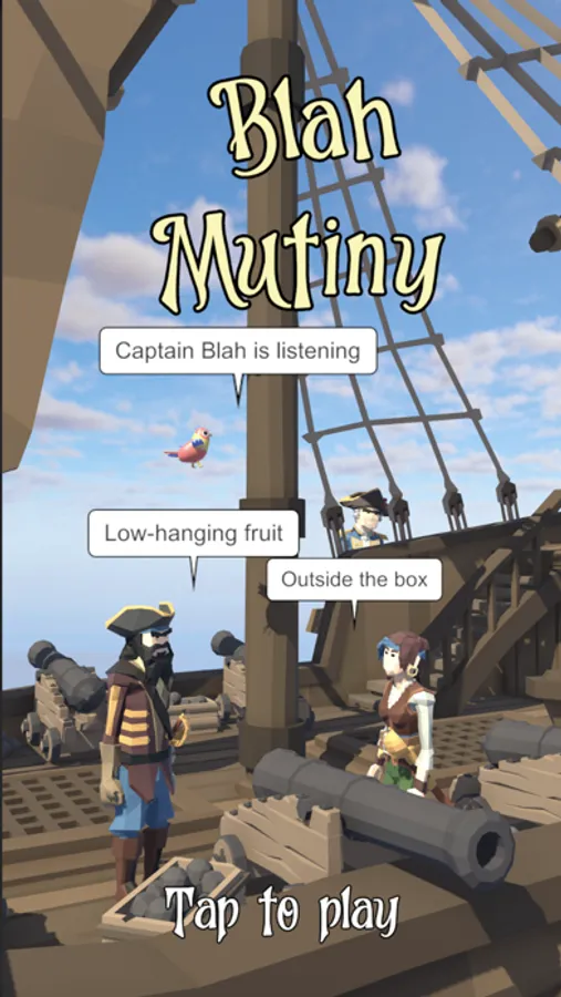 Captain Blah has spread his unbearable corporate jargon to the pirate town of Port Loyal. You are the pirate hero who will incite a mutiny of Captain Blah and rid the town of corporate buzzwords such as Pivot, Synergy, New Normal, Disruptive, and the like. In classic endless runner style, dodge and jump obstacles and villains while collecting letters, coins, and gems to mute Captain Blah and force him to walk the plank.