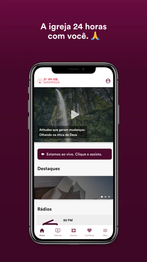 - Siga a agenda e fique por dentro de tudo que acontece na igreja, inscreva-se em eventos e tenha seus ingressos sempre com você.