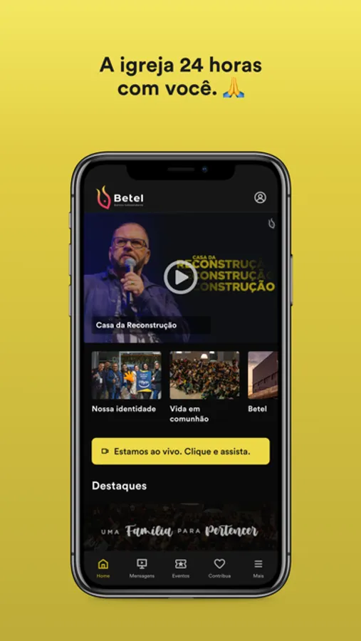- Conecte-se com a igreja através dos grupos de interesse, receba conteúdo direcionado e obtenha sua carteirinha exclusiva.