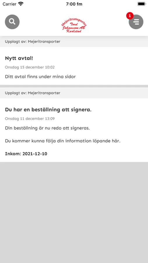 Det här är Mejeritransporter-APPEN, din trogna följeslagare som håller dig uppdaterad och förenklar kommunikationen för kunder och medarbetare hos Mejeritransporter.