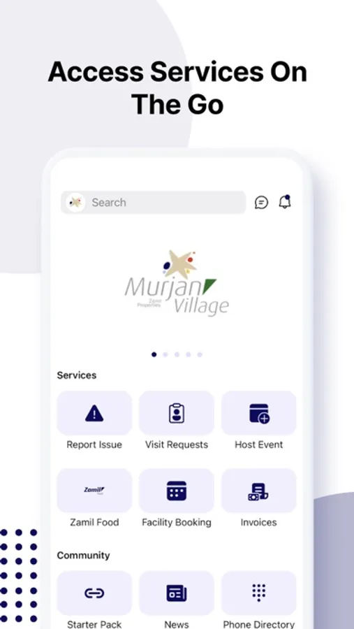 Murjan Village App gives its residents 24-hour access to pay rent, submit work orders, list items for replacement at home, and book any gatherings or activities.