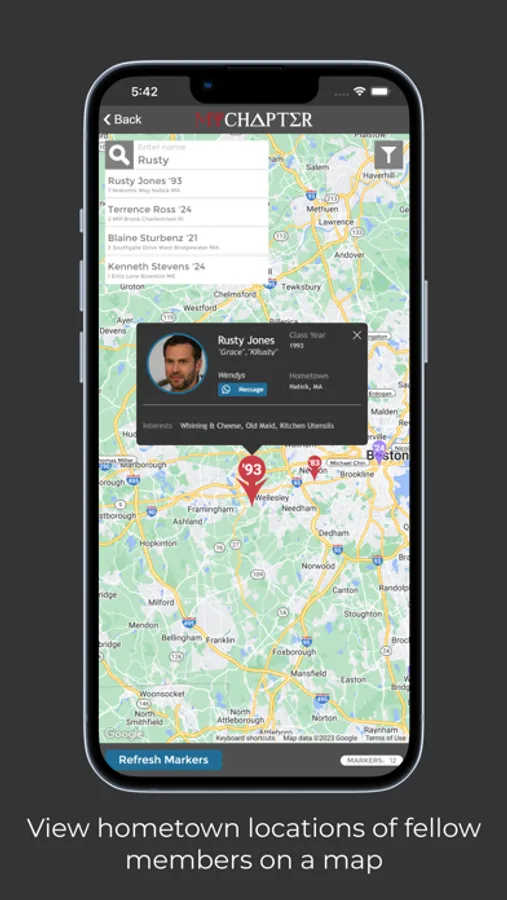 - Members can be filtered on class year, home state, alumni/undergrad...