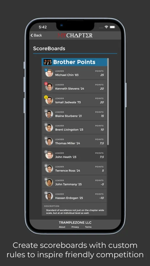 - MyChapter supports individual member and chapter-wide ScoreBoards