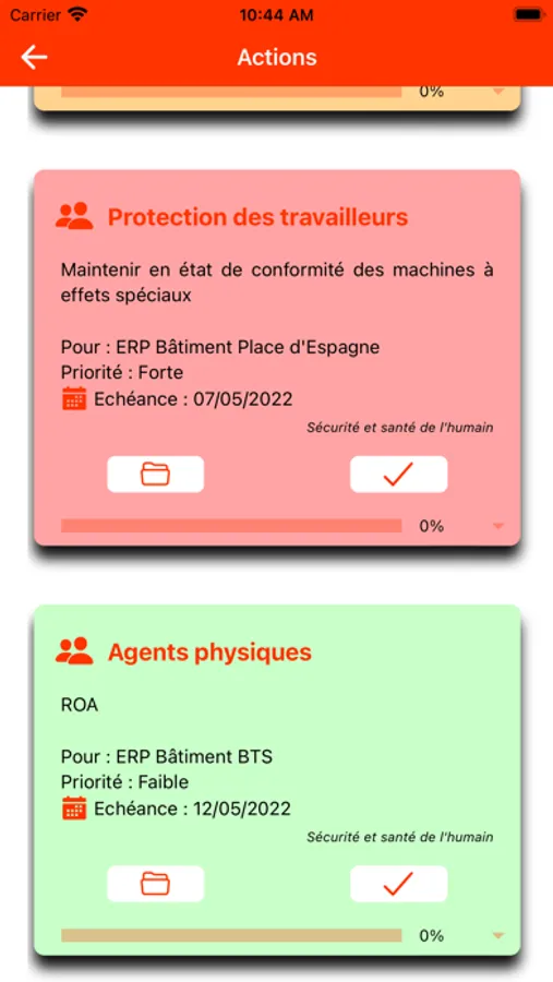 Après s'être identifié, les utilisateurs ont la possibilité de consulter la liste des actions auxquelles ils sont affectés. Ils peuvent alors pour chacune :