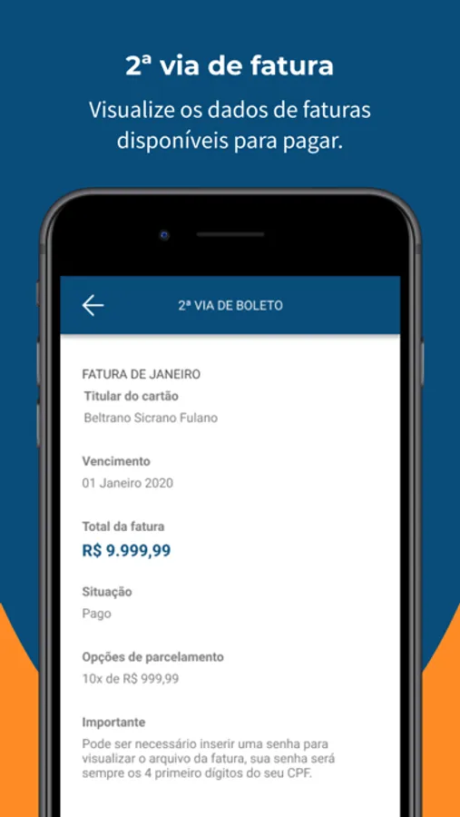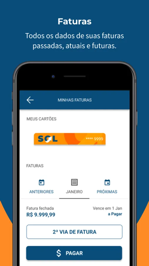 • Ver detalhes das faturas e gerar boleto para pagá-las;