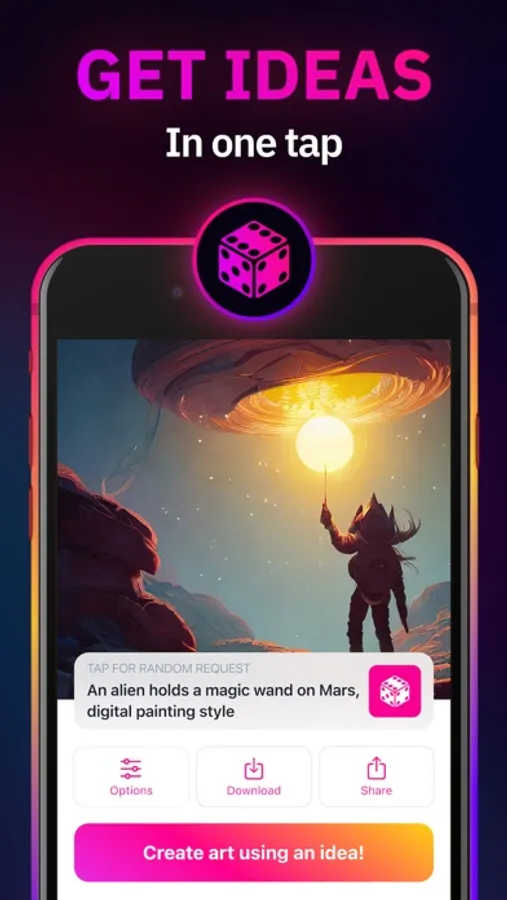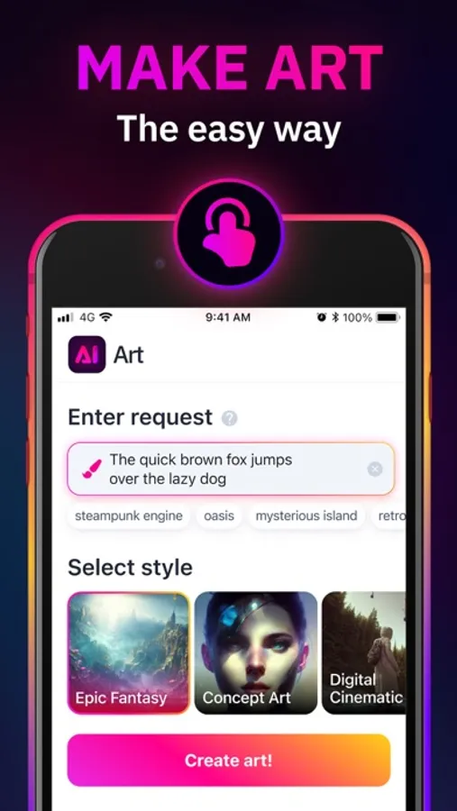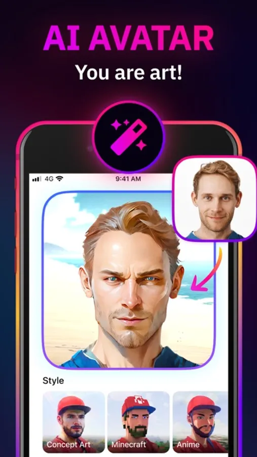 In our App, you can find the best and most diverse styles. From “Cyberpunk” to “Van Gogh”. From “Epic Fantasy” to “Digital Concept Art".