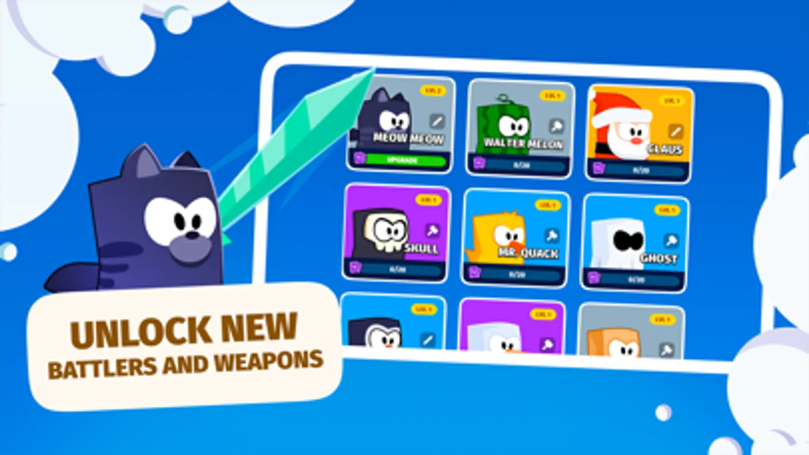 Get daily rewards in battles: open new characters and weapons, learn new skills, get upgrade cards, and unlock new game modes.