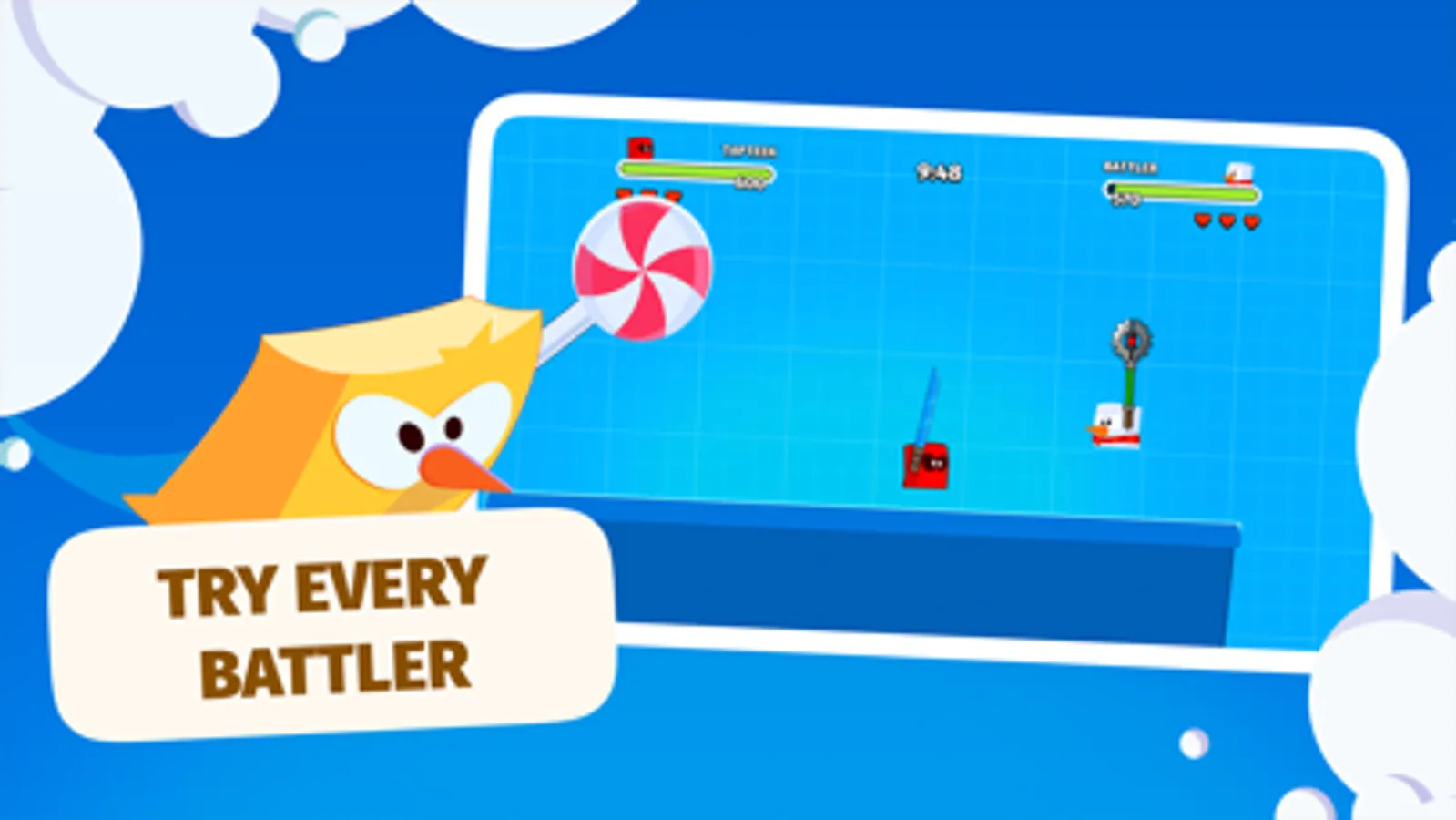 Uncover dozens of fun and crazy weapons, from swords and axes to bread and lollipops, that will complement your fighter's character. Improve and surprise your opponents with your abilities.