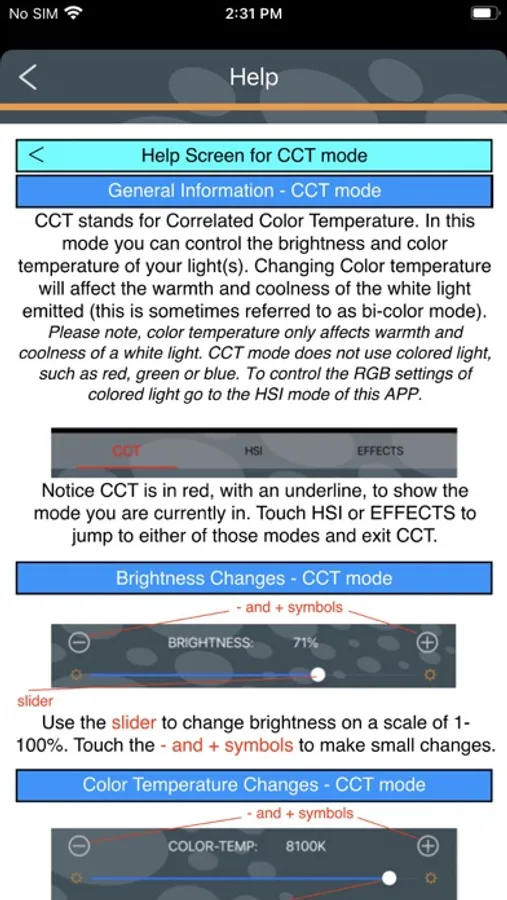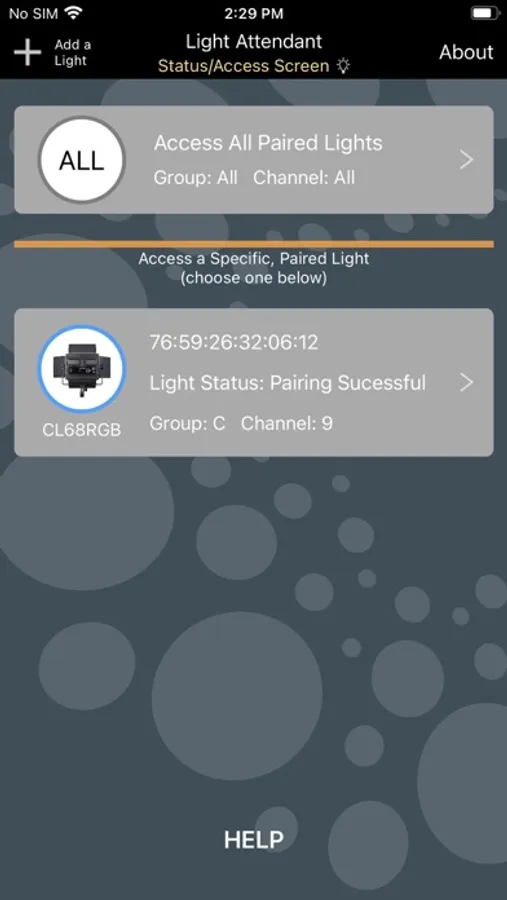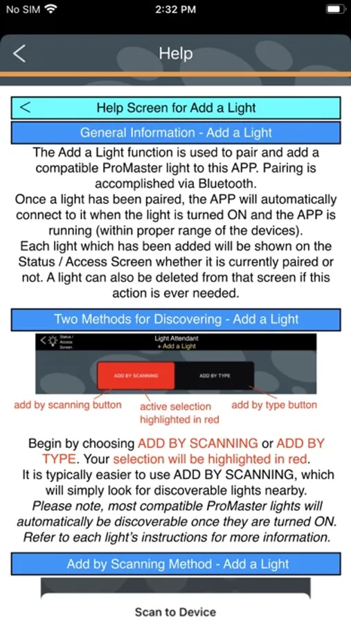 While Light Attendant has been designed for intuitive use, help screens are also available within the app, and can be accessed at any time for further instruction. Simply touch the HELP button at the bottom of any screen to receive full instructions regarding the use of that particular screen in the app.
