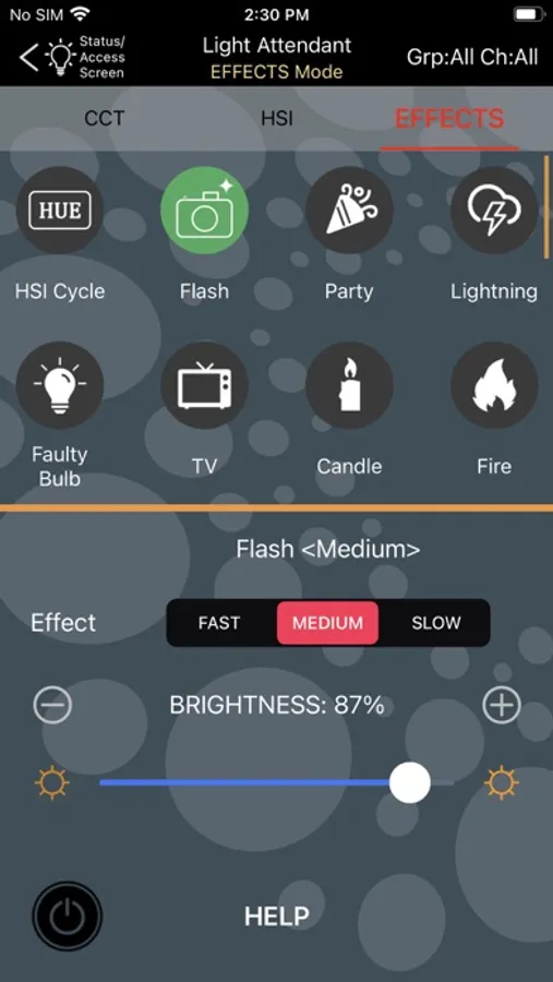 When working with multiple LED lights this app offers two methods for choosing which lights you are controlling. The first method is a traditional use of Groups and Channels. The second method lets you choose a specific light, regardless of its Group or Channel setting. Using the second method, Light Attendant will automatically tailor its options to the specific light you are using (such as color temperature range). You can easily switch back and forth between these two methods anytime you like.