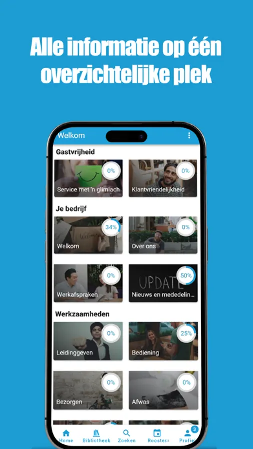 Inwerken kost veel tijd. Keer op keer. Bespaar tijd door alvast kennis te laten maken met je bedrijf in de app. Zo weten nieuwe medewerkers alvast wat zij kunnen verwachten.