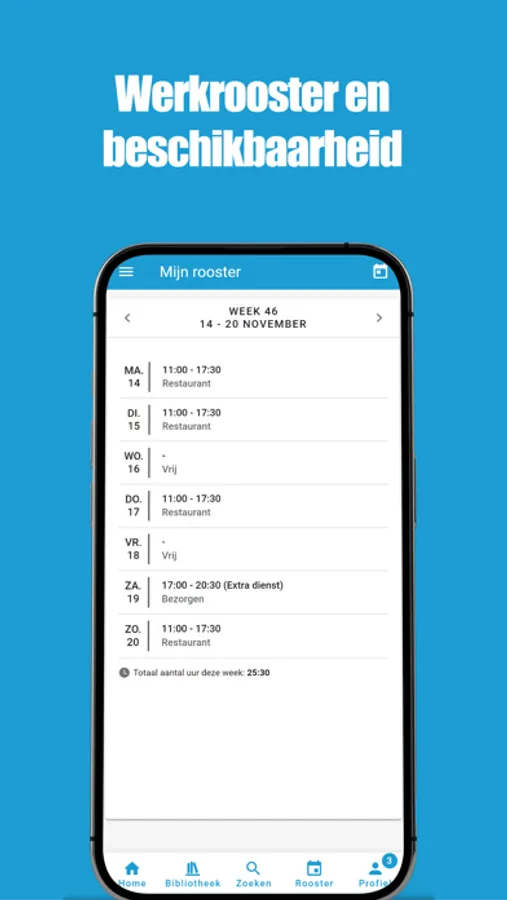 Door inzicht in de beschikbaarheid van je medewerker wordt het rooster maken een stuk gemakkelijker. Het definitieve rooster is voor iedereen mobiel beschikbaar. Ook als je later nog een wijziging aanbrengt.